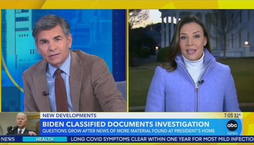The Biden documents scandal entered its second week Monday and, on the flagship broadcast network morning news shows, ABC’s Good Morning America remained in a defensive mode for Team Biden by repeatedly insisting the White House will be cooperative and transparent with the special counsel, fretting “Republicans...are now pouncing,” and boasting Republicans will never be able to find…