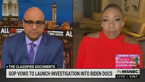 As President Biden’s keep piling up, MSNBC All In guest host Ali Velshi welcomed former Biden deputy assistant and Symone host Symone Sanders-Townsend to wonder what the big deal is. For Velshi, Biden’s document scandal is the “next Benghazi” while for Sanders-Townsend, Hunter Biden is “just his son.”