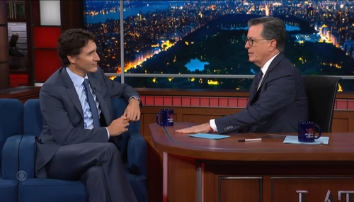CBS’s Stephen Colbert welcomed Canadian Prime Minister Justin Trudeau to Monday’s taping of The Late Show in an attempt to help him reverse his collapse in the polls by labeling his Conservative Party opponent, Pierre Poilievre, “Canada’s Trump,” which naturally means he is, in Colbert’s eyes, a fascist, nativist-xenophobe.