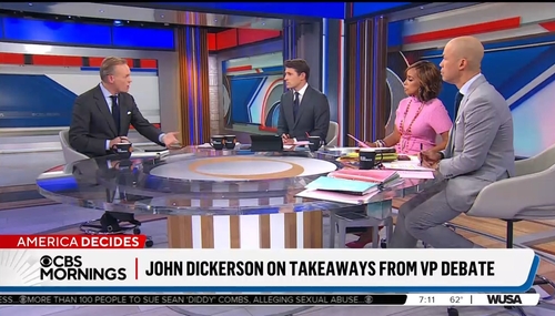 Wednesday’s CBS Mornings predictably had robust coverage of the vice presidential debate it hosted between Republican Senator JD Vance and Democratic Governor Tim Walz (MN), but it was often colored by the condescending, elitist, and partisan analysis by chief political analyst John Dickerson, who predicted “fuel is out there” in the form of desire for “violence” by Trump supporters…