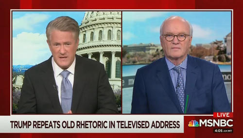 During Wednesday’s Morning Joe, host Joe Scarborough and his panel reacted with scorn to President Trump’s Oval Office address. All told, the panel engaged in hyperbole; describing the Trump administration as a “Seinfeld presidency” and declaring the President himself a national emergency.