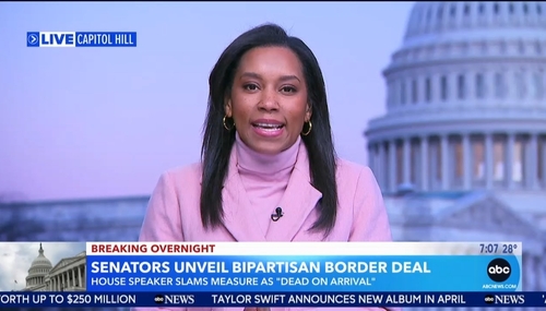 With the senators behind the bipartisan border deal having finally unveiled the text of their bill on Sunday night, the “big three” of ABC, CBS, and NBC went all out on their Monday morning news shows to fluff the pillows of dealmakers, giving few to any details beyond cursory allusions to give it maximum appeal and painting GOP opposition as driven by former President Trump.