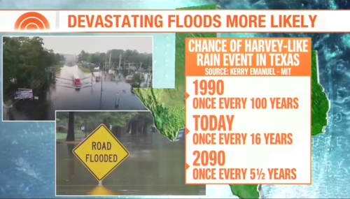 While reporting from Spring, Texas to promote charitable efforts to rebuild the community in the wake of Hurricane Harvey, on Tuesday’s NBC Today, weatherman Al Roker used the devastation from the natural disaster to push the climate change agenda. Citing a MIT study, he warned that such deadly weather events would “become more and more prevalent.”