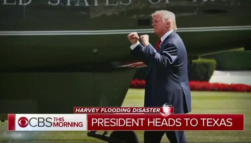 CBS This Morning on Tuesday devoted two segments to hammering Donald Trump on Hurricane Harvey, wondering if the storm will derail his fall plans on taxes, building a wall and for any plans he had on ending the so-called Dreamer program. Additionally, the journalists again hit the President for visiting Texas too soon.