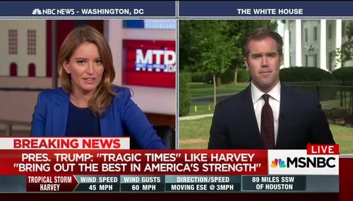 The "journalists" at MSNBC seem eager for Hurricane Harvey to be a political disaster for Donald Trump, preemptively reminding everyone what the stakes are. Deadline: White House anchor Nicolle Wallace on Friday was amazed that the President hasn’t screwed it up yet: “It seems to me that this is the first event of this presidency where sort of the dire nature of the event seems to have halted…