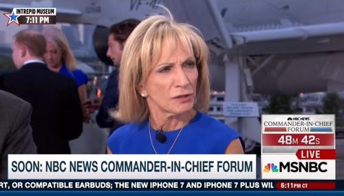 Moments before Wednesday night’s MSNBC/NBC News commander in chief forum, MSNBC host/NBC News Clinton correspondent Andrea Mitchell informed viewers on Hardball that such questions about Hillary Clinton’s ability to serve in that top job leading the military in both a competent and tough fashion shouldn’t be given the light of the day because “[s]he proved her commander in chief bona fides” over…