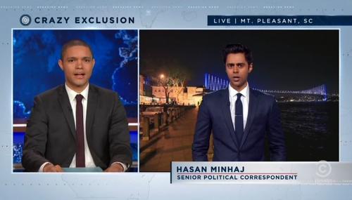 Seeking to crack a few jokes and draw a moral equivalency and lump together Islamophobia and liberal stereotypes of conservatives, Tuesday’s Daily Show featured host Trevor Noah and correspondent Hasan Minhaj quipping that “Donald Trump is white ISIS” and, because of that, we "should not allow any conservatives into the White House."