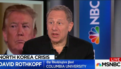 Appearing on MSNBC Live With Stephanie Ruhle on Monday, Washington Post opinion writer and former Foreign Policy magazine editor David Rothkopf launched into an unhinged tirade against President Trump’s handling of global affairs, particularly the nuclear threat from North Korea: “President Trump has established himself in the minds of world leaders in a few ways. He’s a liar, he’s undependable,…