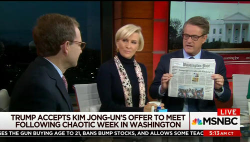 Some of us are old enough to remember a day when Joe Scarborough lamented that tabloid sex scandals were distracting from important political discussions. It was yesterday. But Friday was a new day – a day in which Morning Joe hosts Joe Scarborough and Mika Brzezinski would see through the charade of a President meeting with North Korean dictator Kim Jong-un for what it truly was: an attempt to…
