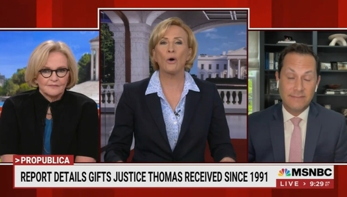 On Thursday’s Morning Joe on MSNBC, co-host Mika Brzezinski, Politico White House editor Sam Stein, and former Senator Claire McCaskill (D-MO) desperately peddled crazed claims about Supreme Court Justice Clarence Thomas. They claimed a new ProPublica report on Justice Thomas’s gifts received while in office was evidence he was being bribed in order to rule in favor of…