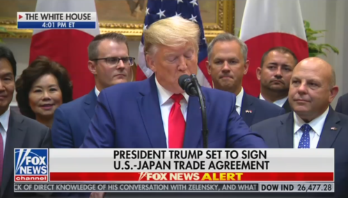 At a White House signing on Monday, President Trump and representatives from Japan signed what the President called “the new U.S.-Japan trade agreement and the U.S.-Japan digital trade agreement.” The non-digital trade agreement included agriculture sales that would aid American farmers. After months of decrying how the President’s trade wars were harmful to farmers, the evening newscasts of…