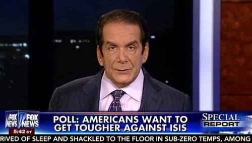While a panelist on Monday night's edition of the Special Report program, syndicated columnist Charles Krauthammer criticized President Barack Obama for “trying to convince us that we are actually prevailing, winning, pushing in on ISIS (the Islamic State of Iraq and Syria).”
