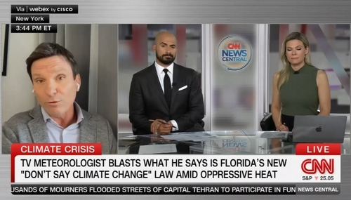 On Wednesday's CNN News Central, hosts Boris Sanchez and Jessica Dean, along with chief climate correspondent Bill Weir, applauded NBC Miami meteorologist Steve MacLaughlin’s recent plea that people help fix climate change by voting against Gov. Ron DeSantis.
