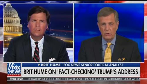 On Wednesday's Tucker Carlson Tonight, veteran Fox News analyst Brit Hume called out journalistic "fact checkers" who assume that liberal opinions on the illegal immigration issue are facts, and therefore that the conservative counter-opinions are claimed by those journalists to be not factual.