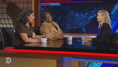 On Thursday, Comedy Central’s Desi Lydic welcomed New York Magazine writer-at-large Rebecca Traister and Rutgers Prof. Brittney Cooper to The Daily Show to gush over Kamala Harris and breathe a sigh of relief that she, and not Republican Nikki Haley, may be the first female president.