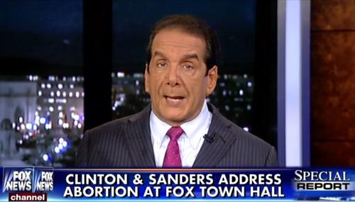 On Tuesday’s Special Report on Fox News, columnist Charles Krauthammer praised anchor Bret Baier for finally holding Hillary Clinton and Bernie Sanders accountable for their hard-left abortion views: “I thought it was even almost – it was semi-historic the way you actually asked a question about abortion. I think there have been, what, seven Democratic debates and not one about abortion.”