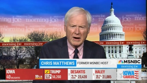 Former MSNBC host Chris Matthews just turned 78, and when they let him loose on Morning Joe now, you can't help but think how much he resembles Joe Biden. He's bitterly anti-Trump, he rants and he rambles, and you have no idea when or where he's going to end his remarks. On Tuesday, Matthews put on his crabby face. The thrill up his leg was gone.