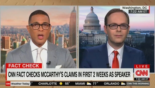 Don Lemon inspired giggles by claiming "The House speaker, Kevin McCarthy, has had his hands on the gavel for just over two weeks now, and if you're a person in power, you better believe your expert fact checker Daniel Dale is watching your words."