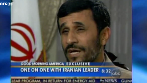 ABC last week struggled to respond to Whoopi Goldberg’s shocking comments that the Holocaust wasn’t about race. But this is the same network that once fawned over the Holocaust-denying former leader of Iran. Fifteen years ago this week, then-Good Morning America host Diane Sawyer gushed over Mahmoud Ahmadinejad as a “sentimental,” “sympathetic” man who cries a lot since he’s so caring…