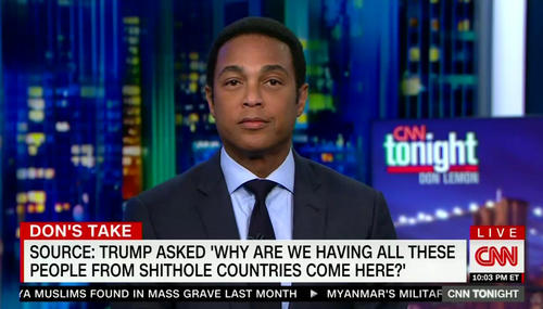 After President Trump’s leaked provocative comments about immigrants from third world countries last night, the media has predictably thrown itself into a frenzied state, spending just about every waking minute of reporting on the inflammatory remark. CNN anchor Don Lemon was no different, unleashing a scathing tirade against the President to open the first hour of CNN Tonight on January 11.