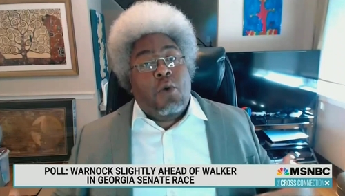 On Saturday's edition of The Cross Connection on MSNBC, host Tiffany Cross brought on noted racist and overall crazed lunatic Elie Mystal, who serves as the justice correspondent for The Nation to discuss the Georgia Senate race which is pitting incumbent Democrat Senator Raphael Warnock against Republican and former NFL running back Herschel Walker.