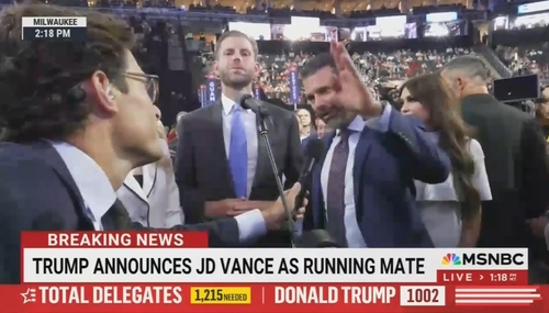 While delegates were being counted on Monday during the Republican National Convention, MSNBC sent Jacob Soboroff to the floor to interview Donald Trump Jr. about what his father’s second term would look during Katy Tur Reports. The pair battled over whether Trump was “divisive” before Trump Jr. ultimately told Soboroff to “get out of here” as he spread some fake news over immigration…