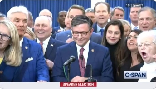After House Republicans agreed on Mike Johnson as a Speaker nominee, ABC reporter Rachel Scott started asking typical "election denier" questions, and drew boos and a "shut up" from Republicans. Reporters were outraged...even though they were 2016 election deniers.