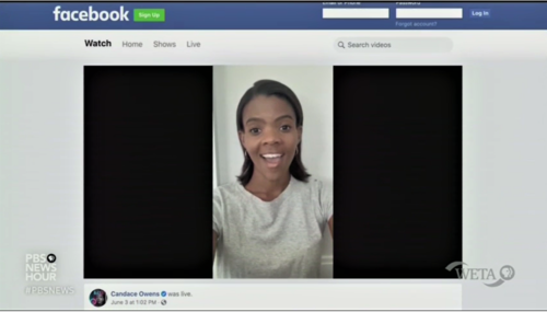 Friday's PBS NewsHour ran a report promoting the leftist campaign to boycott Facebook because it allows viral content liberals don't like. But PBS really went too far this time, conflating a recent video by conservative activist Candace Owens with a couple of members of an extremist group who murdered a law enforcement officer, Dave Underwood.