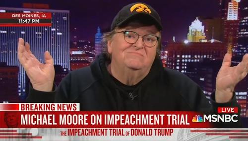 As Thursday turned into Friday and impeachment acquittal seemed more likely, the late night coverage on MSNBC devolved into hyperbolic claims of the end of “truth” and that Republican Senators are about to let go the equivalent of a wife beater. Host Ali Velshi turned to the liberal media’s voice of reason, Michael Moore.