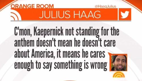 Looking at social media reaction to controversial 49ers quarterback Colin Kaepernick maintaining his Black Lives Matter protest against the National Anthem during a military appreciation night in San Diego, on Friday’s NBC Today, co-host Carson Daly skewed the segment toward messages of support for the NFL player: “Yeah, there very much are two sides...His decision has many people on social media…