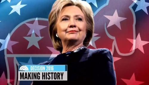 On Tuesday, all three network morning shows celebrated the news that Hillary Clinton had won enough delegates to become the presumptive Democratic nominee. At the top of NBC’s Today, co-host Savannah Guthrie heralded: “Making history. NBC News declares Hillary Clinton the presumptive nominee. The first woman in history to be nominated on a major party ticket.”