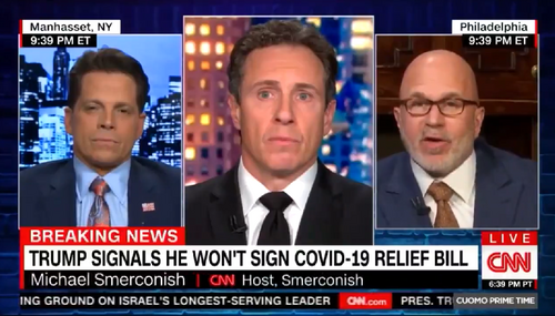 In sharp contrast to the wall of criticism by the networks of President Donald Trump's threat to veto the pork laden COVID relief bill, a refreshing bit of political diversity broke through the groupthink on CNN's Cuomo Prime Time on Tuesday. Although host Chris Cuomo and guest Anthony Scaramucci concurred with the usual CNN hardline on Trump, CNN anchor Michael Smerconish provided a…