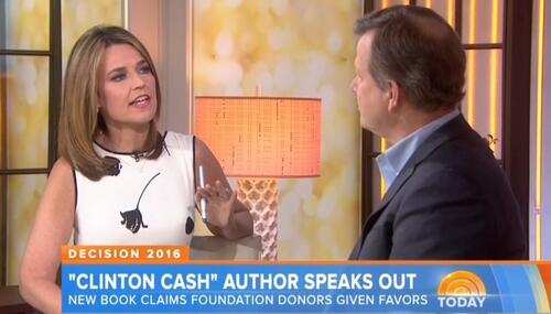 In an interview with Clinton Cash author Peter Schweizer on Monday's NBC Today about the scandal swirling around the Clinton Foundation, co-host Savannah Guthrie worried about the political fallout for Hillary Clinton: "Before we get into some of the details, let's put it bluntly. Are you hoping that this book and the issues you raise in it torpedo her candidacy?" And: "A lot of your critics say…