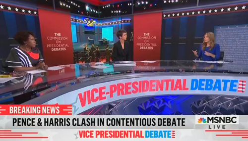 MSNBC’s post-vice presidential debate analysis was apparently being beamed in Wednesday from an alternate universe, because according to their cackling coven of network hosts (Rachel Maddow, Joy Reid, and Nicolle Wallace), Vice President Mike Pence was “flaccid,” “anemic,” “very low energy,” and “just looked limp and lame.” That conflicted with CNN’s shoddy analysis which found Pence to be a…