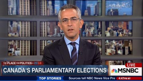 Liberal MSNBC journalist Richard Wolffe on Monday complained of conservative “islamophobia” in Canada. Previewing that day's election results, he said of Prime Minister Stephen Harper: “...Millions of voters are heading to the polls in Canada today where one of the leading contenders is facing accusations of using islamophobia and dog whistle politics.”