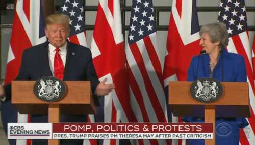 At a joint press conference in London on Tuesday, U.K. Prime Minister Theresa May thanked President Trump for putting pressure on the NATO members who were not paying what they agreed to and getting results. But instead of the reporting on that praise during their evening newscasts, the liberal broadcast networks chose to hype anti-Trump protesters, including an effigy of him on the toilet,…