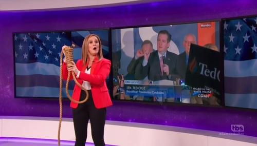 The premier of former Daily Show correspondent Samantha Bee’s TBS program Full Frontal arrived on Monday night and for liberals seeking more anti-conservative rants disguised as humor, Bee provided just that as she berated Iowa caucus winner Ted Cruz as a “fish-faced, horseshit salesman” while playing with a noose.