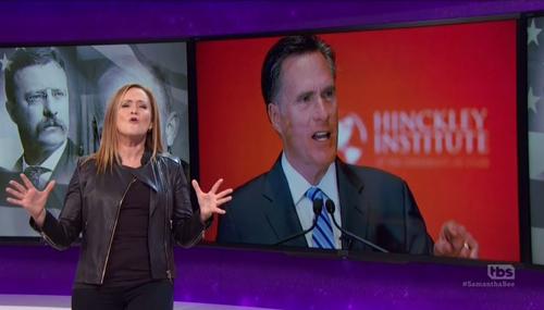 For the second week in a row, TBS’s Full Frontal host Samantha Bee resorted to childish toilet humor to attack conservatives and Republicans with Monday night’s installment featuring Bee predicting that Mitt Romney “soil[ed] his temple garments at the thought of brokered convention” before his anti-Trump speech on Thursday.