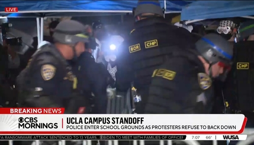 Thursday’s CBS Mornings was live on the scene as California Highway Patrol was busting the anti-Semitic/pro-Hamas encampment at UCLA. But from the get-go, the network seemed intent on hinting that at any moment police would turn their guns on the students and UCLA would become the next Kent State massacre.
