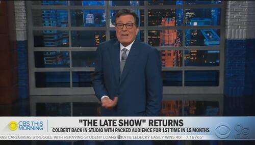 The liberal late night shows have declared war on independents, conservatives, Republicans, anyone who isn’t a hard-left liberal. But the shills at CBS keep pretending that former comedian Stephen Colbert is some sort of national icon, as opposed to a partisan Democrat. On Tuesday, CBS This Morning hailed the return of Colbert as a moment so exciting it will make you shake.