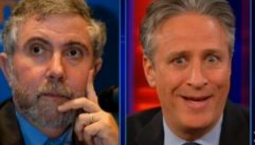 Paul Krugman vs. Jon Stewart. The New York Times columnist and economist put his utter lack of humor on display in a Saturday afternoon blog post in which he attacked as lazy and unprofessional the host of the Daily Show. Stewart's sin? Daring to mock the trillion-dollar platinum coin as a solution to the debt ceiling crisis. Here's Krugman on "Lazy Jon Stewart":