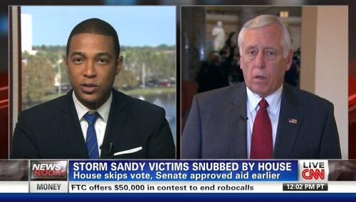 After House Speaker Boehner pulled a vote for Hurricane Sandy aid on Tuesday, CNN gave a microphone to outraged politicians who bashed the House GOP for not voting on the relief bill that Senate Democrats loaded with pork.