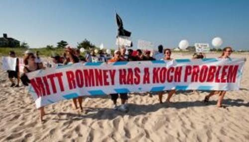 On Monday, New York Times reporters Michael Barbaro and Sarah Wheaton made much of a left-wing protest of Mitt Romney fundraising in the well-heeled Hamptons, "Romney Mines the Hamptons for Campaign Cash." The text box: "Protesters gather outside events in sprawling homes."