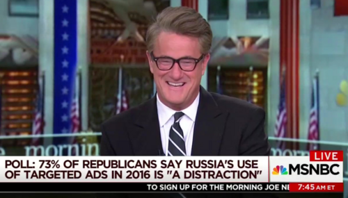 On Monday’s Morning Joe, excitement was in the air as the panel spent most of the broadcast speculating about and then reporting on the Mueller team’s indictments of Paul Manafort and Rick Gates. However, before the specifics of the charges became public, the liberal pundits took the opportunity to go over a recent poll by Axios and SurveyMonkey that evaluated what Americans believe about Russian…