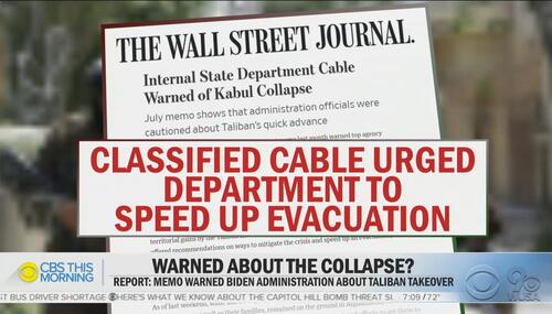 CBS on Friday finally discovered the bombshell Wall Street Journal scoop that the Biden administration was warned by the U.S. embassy of impending chaos if he didn’t change course. Yet CBS This Morning allowed just a scant 50 seconds on the disturbing development. Still, at least the network covered it. NBC on Thursday night and Friday morning is still hiding the revelations.