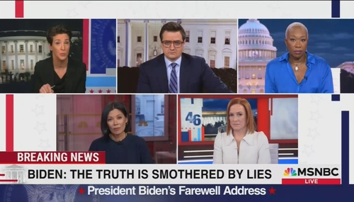 Predictably, the prime time hosts at MSNBC oohed and aahed over President Joe Biden’s farewell address with a verve normally seen emanating from television production studios in Pyongyang. But in this case, they went above and beyond their customary cheerleading. They also worked hard to bolster the post-speech narrative of the perils of a Trump-adjacent oligarchy.