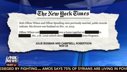 Fox News anchor Sean Hannity and his guests on Thursday night slammed the New York Times for printing key details about Ferguson police officer Darren Wilson's home address. An angry Hannity attacked, "If anything happens to that man, his family, or that home...the culpability is with them."