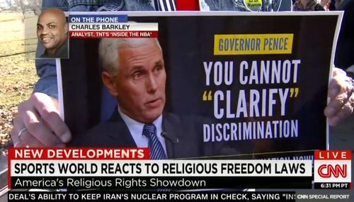 CNN anchor Chris Cuomo has aggressively attacked those who support Indiana's religious freedom law and on Thursday night he brought on Charles Barkley to slime Christians as "religious nuts." The former NBA player, who is from Alabama originally, sneered, "All these rednecks hide behind the Bible. That's what they do. That's one of the reason the south is behind in everything. They always hide…