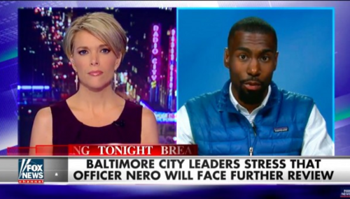 During Monday evening's edition of The Kelly File on the Fox News Channel, host Megyn Kelly clashed with DeRay Mckesson, an activist with the Black Lives Matter movement, over the decision handed down that morning finding Officer Edward Nero “not guilty” in the death of Freddie Gray.