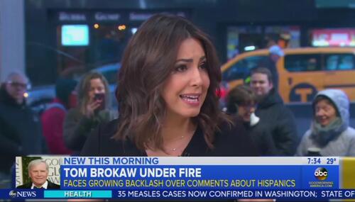 ABC was the only network Monday morning to report on Tom Brokaw’s comments that offended both the right and left on Meet the Press Sunday. During a discussion on the border wall, Brokaw argued Hispanics needed to do a better job assimilating, and said Republicans didn’t want interracial marriages. That second part didn’t faze ABC, but the first part made anchor Cecilia Vega very upset.